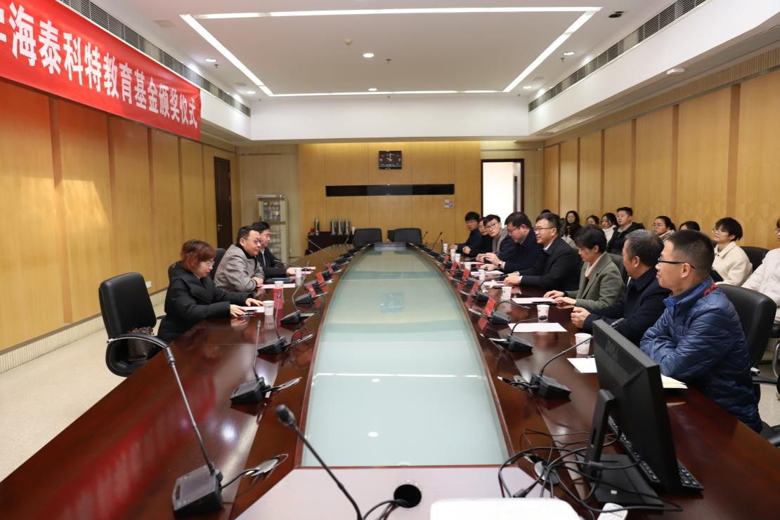 3月8日上午,江苏大学海泰科特教育基金颁奖仪式在图书馆六楼会议室举行。南通海泰科特精密材料有限公司董事长杨如生,校友会与对外联络办公室主任李国昊,材料学院党委书记张成华,学生工作处副处长刘洁,材料学院党委副书记、副院长孙昊,材料学院副院长刘海霞,退休教师孙少纯,以及获奖教师和学生代表参加仪式。颁奖仪式由孙昊主持。